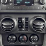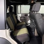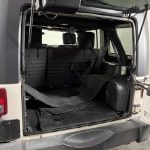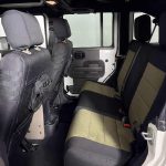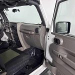 Safety and security features include 4-wheel disc brakes with ABS, electronic stability control with traction control, brake assist, tire pressure monitoring, occupant sensing airbag, dual front impact airbags, integrated rollover protection, front fog lights, security system with panic alarm, and anti-roll bars front and rear. The performance-oriented suspension, 4.10 axle ratio, and BF Goodrich brand tires on 17″ machined cast aluminum wheels further support its trail-ready capabilities.