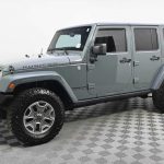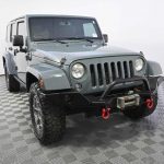 This 2014 Jeep Wrangler Unlimited Sahara commands attention with its distinctive Anvil Clear Coat exterior, featuring a body-color 3-piece hard top with rear window defroster and wiper/washer, matching body-color fender flares, privacy glass, fog lamps, heated power mirrors, and aggressive on/off-road tires mounted on aluminum wheels. The new Jeep styling is complete with front and rear tow hooks and rollover protection bars, offering the perfect mix of rugged capability and refined looks.