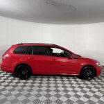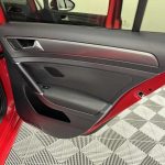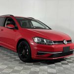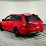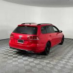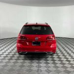 This 2019 Volkswagen Golf SportWagen S 4Motion stands out in vibrant Tornado Red exterior, featuring a subtle lip spoiler, roof rails, 16" Split-V alloy wheels with machined accents, heated power mirrors with integrated turn signals, rain-sensing wipers with heated jets, and fully automatic halogen headlights with LED brakelights. The practical wagon design combines sharp styling with excellent cargo versatility and all-weather capability.