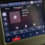 The functional cabin features keyless entry, remote start system, universal garage door remote, steering wheel-mounted audio controls, Uconnect infotainment with 8.4" display supporting Apple CarPlay/Android Auto, SiriusXM, Bluetooth, MOPAR rubber floor mats, 115V auxiliary power outlets including rear, 400W inverter, and rear underseat compartment storage for organized versatility.
