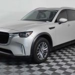 This 2024 Mazda CX-90 is a sophisticated three-row midsize luxury SUV with low mileage, featuring Mazda's innovative turbocharged inline-6 engine and premium appointments for refined driving. Finished in elegant Platinum Quartz exterior with a luxurious Greige leather interior, it offers all-wheel-drive capability, spacious captain's chairs in the second row, and an accident-free history as a local trade.